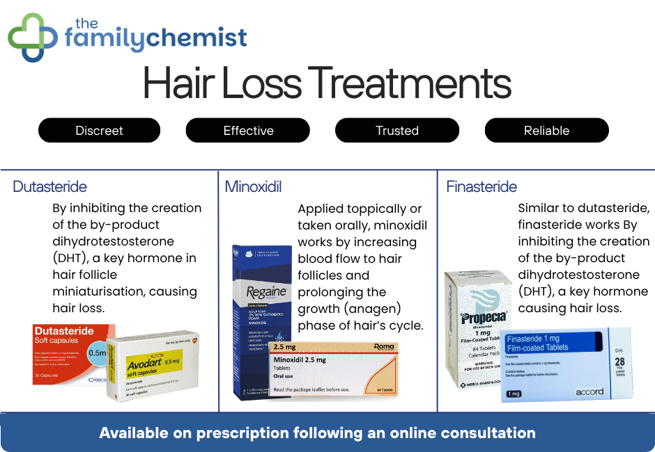 If you notice that your hair loss or hair thinning has not improved after your stress had reduced, or a stressful period has ended, it may be worth exploring clinically proven hair loss treatments. However, please note that these treatments are only available for male patients. Female patients should seek advice from their GP.