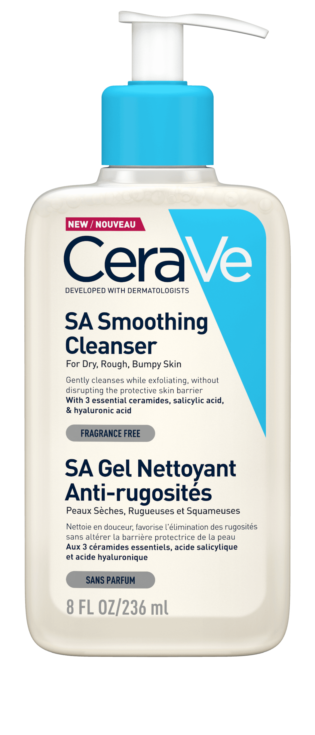 CeraVe SA Smoothing Cleanser is a daily foaming cleanser for the face and body, designed to help improve rough and bumpy skin. It gently exfoliates with salicylic acid to smooth the skin’s texture without damaging the natural skin barrier.