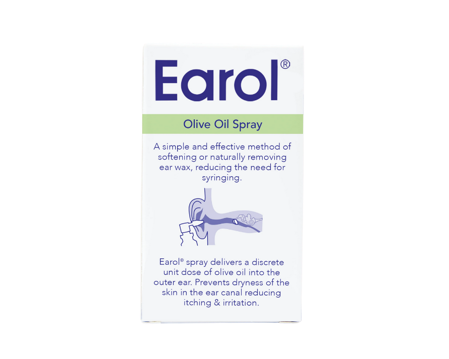 Earol Olive Oil Spray is a gentle ear care product used to soften and help naturally remove earwax. It delivers pharmaceutical-grade olive oil directly into the ear canal, where it hydrates and loosens hardened wax so it can move out naturally. The olive oil also helps lubricate the ear canal, which may soothe dryness and relieve itching associated with wax build-up.
