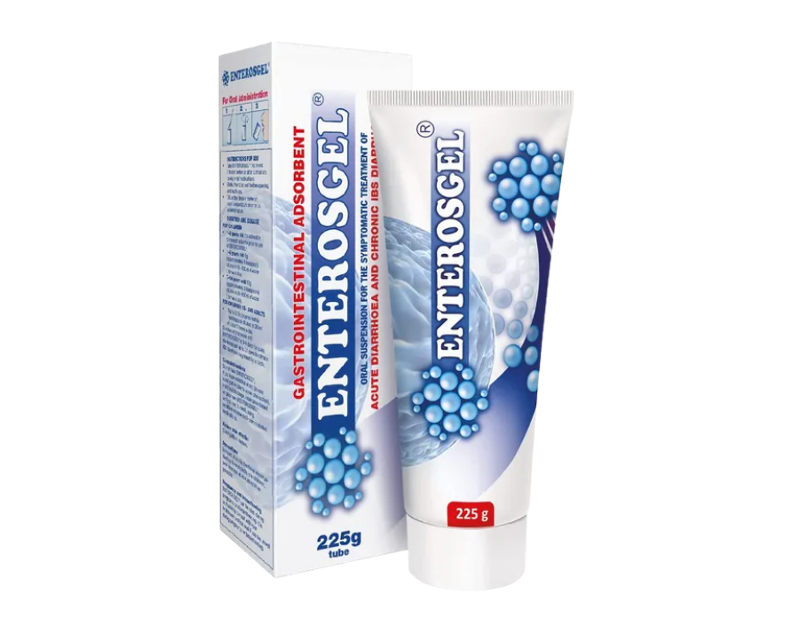 Enterosgel is an oral suspension that is absorbed in the intestine used to treat acute diarrhoea and to help manage symptoms of irritable bowel syndrome with diarrhoea (IBS-D). It works in the digestive tract by binding toxins, bacteria, and harmful substances, which are then removed naturally from the body. Enterosgel is not absorbed into the bloodstream and supports gut health during digestive upset.