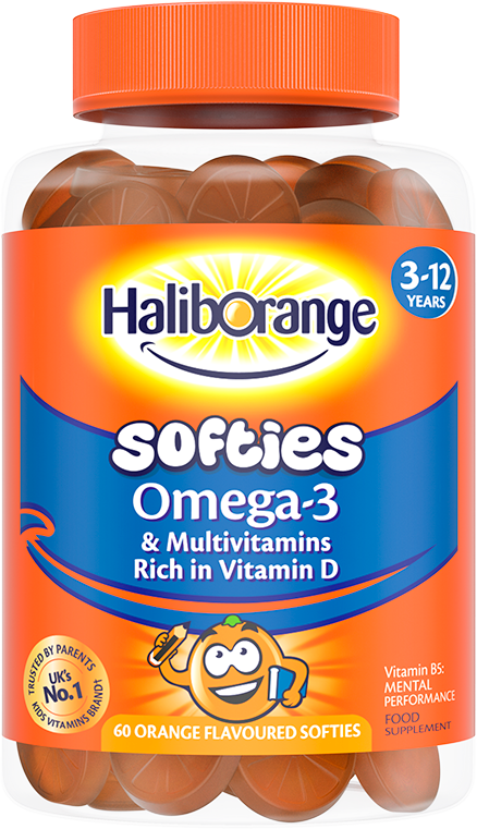 Haliborange Omega-3 & Multivitamin Softies Orange are a tasty and convenient way to support your child’s daily wellbeing. These soft chewable vitamins combine Omega-3 from flaxseed oil with a blend of essential vitamins to help support brain function, energy levels, and overall health. Formulated with key nutrients including Vitamin A for vision and skin, B vitamins for energy and mental performance, and Vitamin C and D to support immunity and bone development, they help contribute to a balanced nutritional intake. With a delicious orange flavour, they make taking vitamins an easy and enjoyable part of your child’s routine.