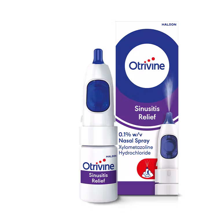 Otrivine Sinusitis Relief Nasal Spray is designed to quickly ease blocked nasal passages caused by sinusitis, colds, or allergies. It works within minutes to help you breathe more freely by reducing swelling inside the nose and clearing excess mucus. Formulated with xylometazoline hydrochloride, it helps shrink swollen blood vessels in the nasal passages, providing fast and effective relief. Its targeted spray delivers a precise dose directly where it’s needed, helping to relieve sinus pressure and discomfort. With long-lasting effects of up to 10 hours, it offers reliable relief throughout the day or night.