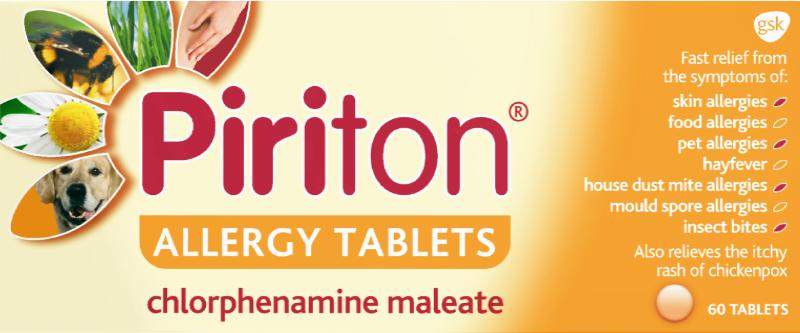 An antihistamine tablet that helps relieve symptoms caused by allergies and hay fever. It is commonly used to ease sneezing, watery or itchy eyes, a runny nose, skin irritations, and other allergic reactions. Piriton Allergy Tablets work by blocking histamine attaching to receptors, helping to reduce itching, swelling, redness and irritation caused by allergy triggers.