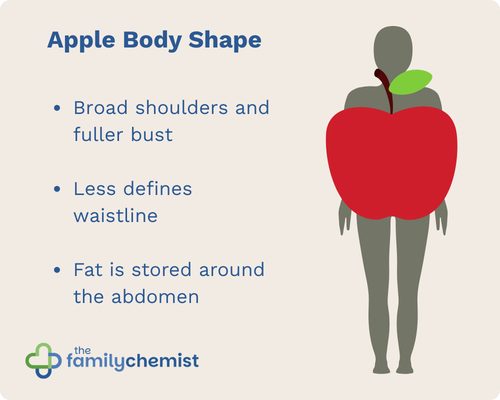 People with an apple-shaped body tend to store more fat around their upper body in the stomach. They look more like an apple; wider at the top, and smaller at the bottom. This type of fat stored around the abdomen often surrounds the internal organs and is strongly linked to health risks such as cardiovascular disease, type 2 diabetes, and metabolic syndrome.